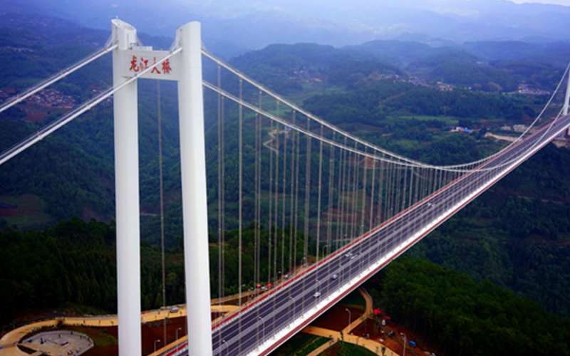 ? ? ? ?龍江大橋(Longjiang Bridge),是中國云南省境內(nèi)一座橋梁,亦稱龍江特大橋,位于云南省西部、橫斷山脈南段,龍江中游河段,跨越保山市龍陵縣龍江鄉(xiāng)上邦煥村與騰沖縣五合鄉(xiāng)大丙弄村之間的龍川江河谷,為單跨簡支鋼箱梁懸索橋,是保山-騰沖高速公路控制性工程。龍江大橋總長2470.58米,橋面寬33.5米,為雙向四車道設(shè)計,設(shè)計速度80千米/小時,其中保山岸橋塔總高169.688米,騰沖岸橋塔總高129.703米,概算投資為19.55億元。