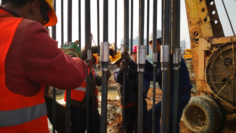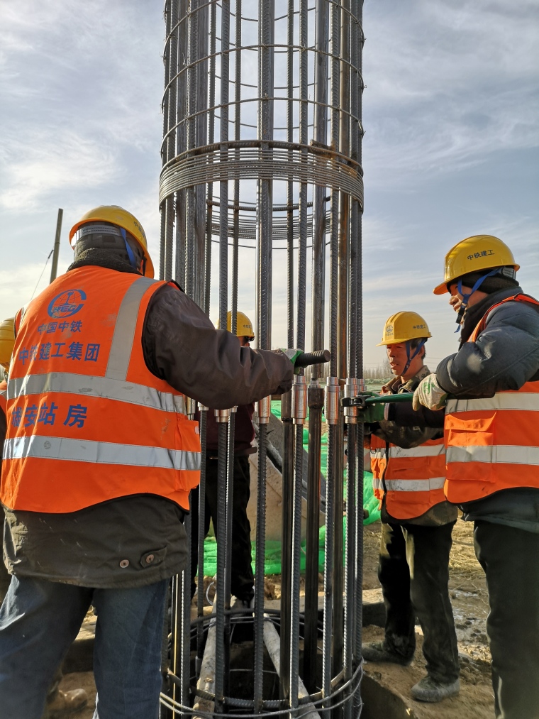 2 connect the reinforcement cage with a connecting wrench at the same time