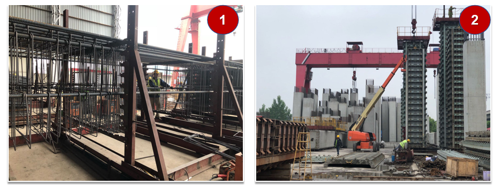 1. Prefabrication of reinforcement framework 2. Pier body concrete prefabrication