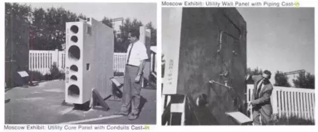 Moscow Exhibition in the 1960s: concrete precast slab embedded in conduit and unit wall embedded with water pipe